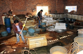 昨日上午,記者隨同環(huán)保執(zhí)法人員前往子英村工業(yè)區(qū)。這兩家非法小電鍍均暗藏于一家名為“利德利機(jī)構(gòu)”的廠房內(nèi),藏身隱蔽、設(shè)備簡陋,兩家非法小電鍍一大一小,小的設(shè)2個滾鍍槽1個掛鍍槽、大的設(shè)3個滾鍍槽2個掛鍍槽。雖然兩家小電鍍相隔不遠(yuǎn),但因所處廠房十分隱蔽,幾番左拐右拐后方能發(fā)現(xiàn)。記者看到,這兩家非法小電鍍的生產(chǎn)廢水未能處理,直接向下水道排放,從其加熱電鍍液的煤爐溫?zé)岬嫩E象看,兩家小電鍍前夜仍在作業(yè)。