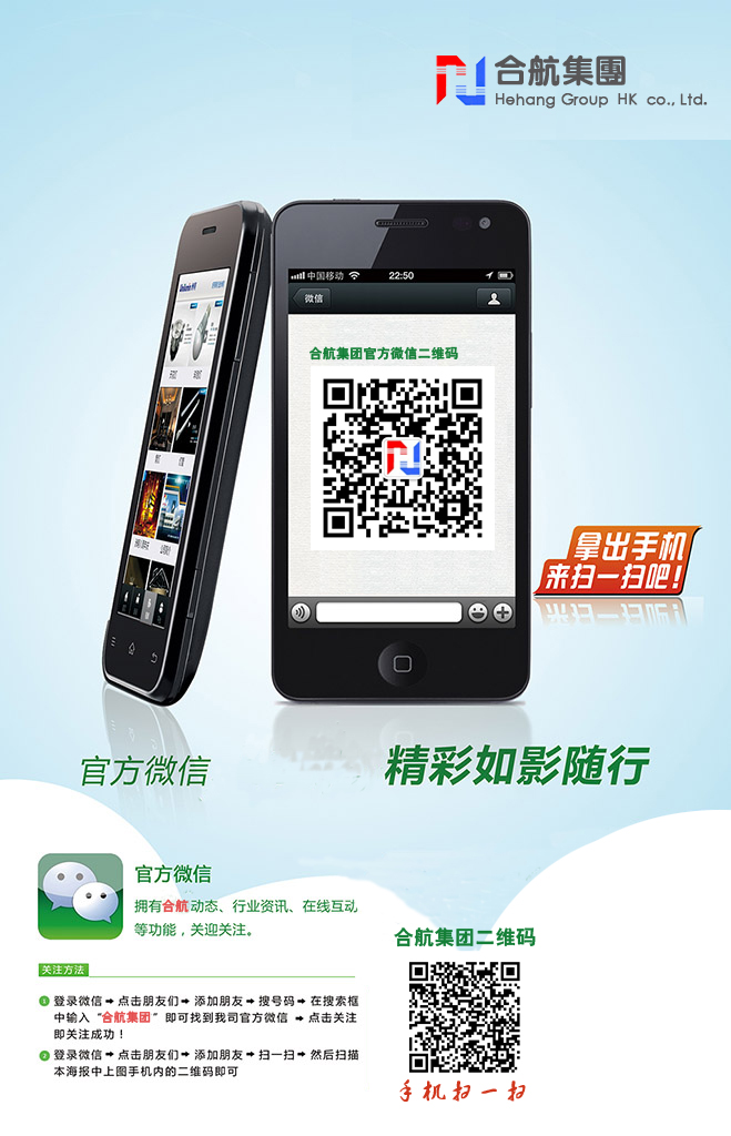 合航集團(tuán)官方微信開通及合航集團(tuán)二維碼上線啦!在這里不僅可以了解公司動(dòng)態(tài),行業(yè)資訊,還有更多的精彩內(nèi)容哦。快快關(guān)注吧?。▌e忘了推薦給我們的客戶和合作伙伴哦)。