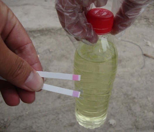 浙江水環(huán)境調(diào)查組調(diào)查發(fā)現(xiàn),在該廠區(qū)東側(cè)圍墻外,有多根白色PVC管,其中有一根一端埋在地下,入土部分用水泥槽圈圍,水泥槽腐蝕嚴(yán)重,槽內(nèi)有強(qiáng)酸性水囤積并有流動(dòng)跡象,但不見污水滿溢。